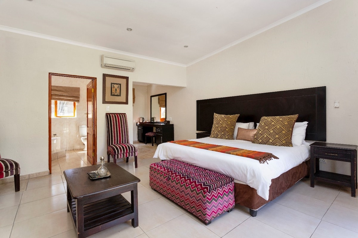 Elegant and inviting, this 32 sqm Suite features a king bed, private terrace with outdoor seating, and a cozy seating area. Perfect for romantic getaways or longer stays. Includes an en-suite bathroom with shower, Nespresso machine, DSTV, fast Wi-Fi, and daily gourmet breakfast. Guests enjoy access to The Salene’s panoramic pool, Lorsoni’s Restaurant (dinner Thu–Sat), and a fully licensed bar with premium local and international drinks.