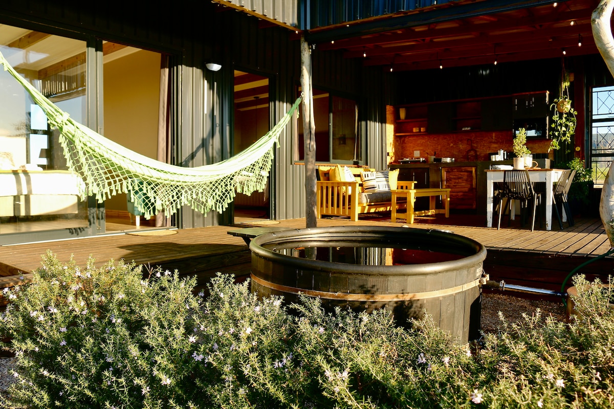 Nestled in the heart of Baardskeerdersbos 2,5 hours from Cape Town, Kwelanga, which means “the morning sun” in Xhosa, epitomizes the essence of a rejuvenating escape. Kwelanga embraces the promise of a new day, symbolizing the beginning of an unforgettable journey. We offer your own private Kol Kol hot tub. Please note this eco units consists of an outside shower and a small wash up basin inside.