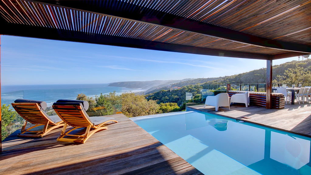 Experience the ultimate coastal lifestyle in our luxury cliff-top home with stunning ocean views from every room. Our organic modern design features natural wood and designer soft furnishings. Dip in our semi heated pool, or enjoy our yoga & chill deck or cook a meal in our designer kitchen. Complete with solar power system & set in a private nature reserve. Just 25 mins from George Airport, 15 mins from the Garden Route Mall and Wilderness. Come unwind in comfort & style.