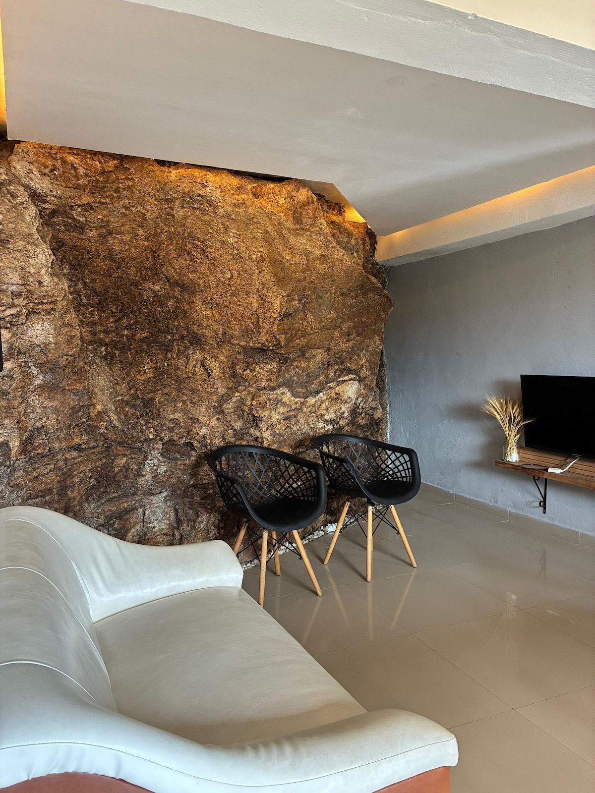 Quer viver uma experiência única e exótica a caverna Moderna irá te proporcionar. A decoração foi toda harmonizada com móveis de madeira maciça, e peças decorativas. Sem falar no conforto, com excelente colchão e ar condicionado de alto padrão.Venha viver essa experiência única se hospedar em casa de pedra artificial super rústica-moderna com todo conforto!!! Oferecemos pacotes para decorar o seu quarto: bodas, aniversário de namoro, aniversário de casamento e renovação de votos. Consulte-nos!!!