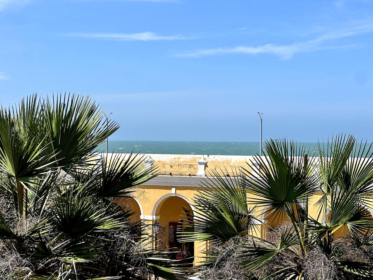 Design apartment located inside the “Walled City,” the historic center of Cartagena de Indias, Colombia—declared a UNESCO World Heritage Site. Ideal for couples and travelers seeking comfort, calm, and style. Fully renovated and featuring beautiful sea views from two balconies, perfect for breathing in the serenity of the ocean. KING Size bed w/ high-quality linens Renovated modern bathroom 75″ Samsung Smart TV FREE Washer/Dryer machine 2 ACs Fast Wi-Fi 24/7 security Fully equipped kitchen