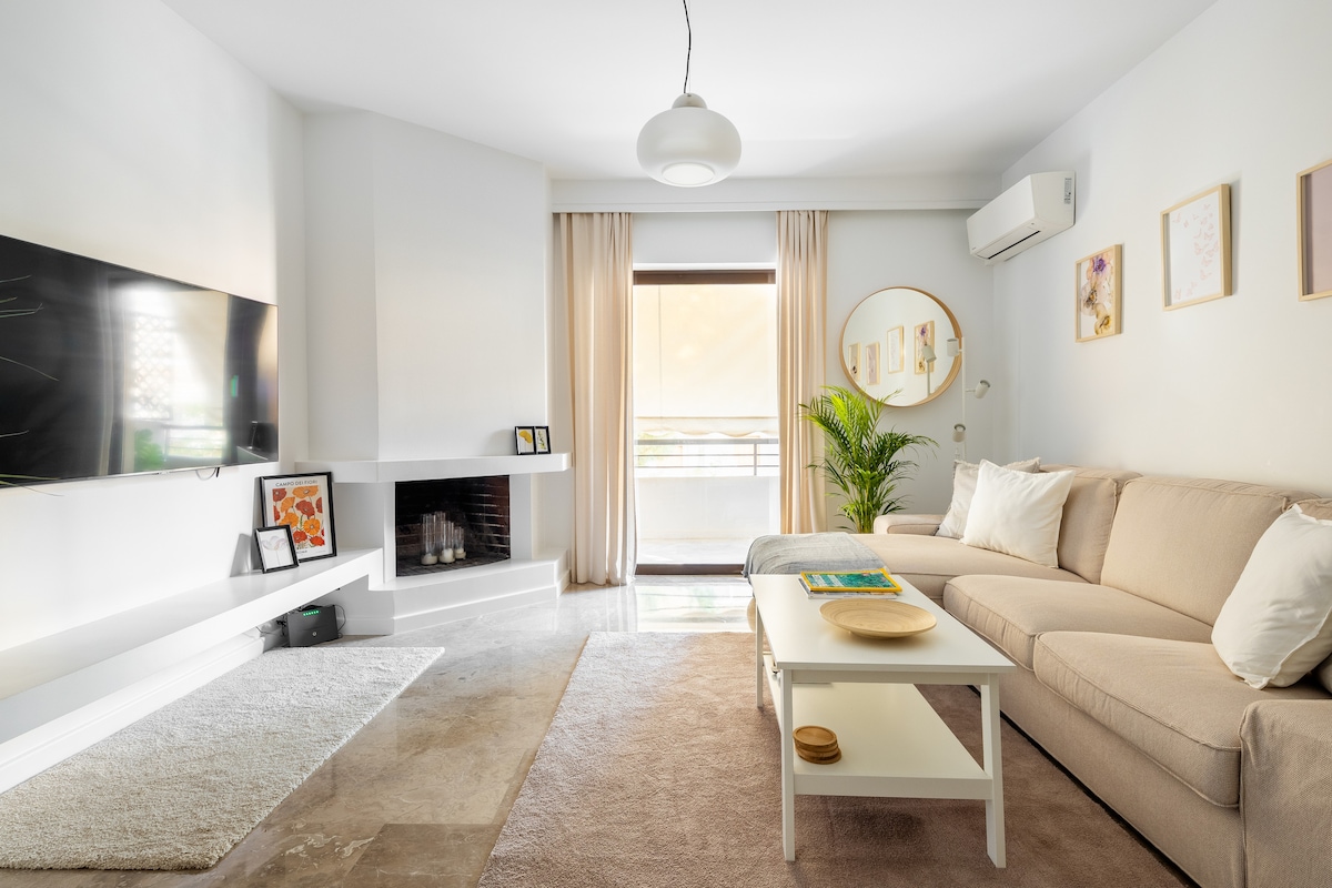 Modern apartment fully renovated, 70 sq.m. with 40 sq.m. garden in the heart of South Athens, just 2km from the spectacular beach of Athens Riviera and 1300 meters from the Alimos Metro Station (10mins Acropolis). This residence is located in a peaceful neighbourhood, perfect for families and couples. Fully-equipped kitchen, Smart TV with Netflix subscription, high speed WiFi, fully-equipped bathroom, one superior bed for two, sofa bed for two and single portable bed.