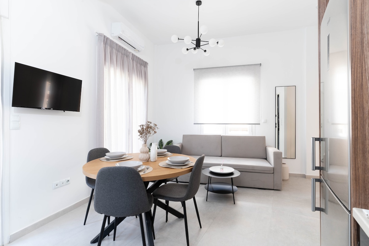 Make a light breakfast in a cozy kitchen with minimalist cabinetry and dine at a charming bistro table on the balcony. In the evening, kick back on a chic sofa and get lost in a book within a stylish, streamlined living room with hip graphic artworks. 3 min walk from SygkrouFix metro station, an 8-min walk from Acropolis Museum. — As the COVID — 19 has grown to pandemic level, we are working to ensure compliance with the latest guidance of hygiene and cleaning. We are taking additional steps for health and safety measures and disinfecting protocols in order to maintain the highest standards. This 40m2 spacious studio with a luxury minimalist design, fully renovated in March 2018, is ideal for couples, small group of friends or couples with a kid who want to enjoy unique holidays in Athens. The open floor plan consists of an entrance area, a fully equipped kitchen, sleeping area with Queen size bed (quality mattress and cotton linen) a comfortable sofa bed and a stylish bathroom with all the amenities you might need during your stay High speed wi-fi, Netflix and basic local channels. Air-conditioning (heat and cold), for the winter there is also central heating system and fireplace We will be at your disposal 24/7 providing you with all the necessary information in order to have a pleasant stay in our sophisticated apartment. Flexible check- in since we provide you the option of self-check- in during night time. - Long stays are possible ask about the rates for a month or longe Set in the historic Koukaki district, the apartment is just an 8-minute walk from the Acropolis museum and a stone’s throw away from some of the city’s most popular historic sites and museums. A vibrant urban wonderland is at your doorstep, with restaurants, bakeries, cafes, and cocktail bars nearby. For reservations more than 10 days we provide one extra cleaning and linen change during the stay for free.