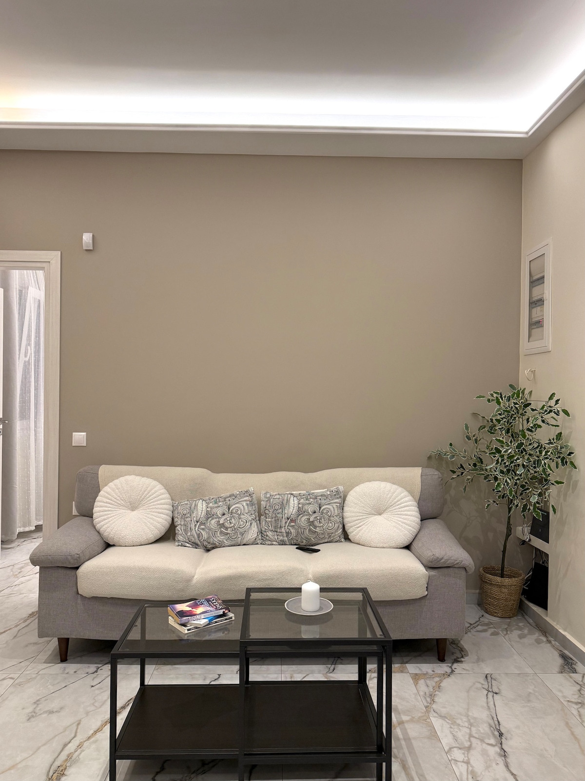 Modern apartment fully renovated, 70 sq.m. with 40 sq.m. garden in the heart of South Athens, just 2km from the spectacular beach of Athens Riviera and 1300 meters from the Alimos Metro Station (10mins Acropolis). This residence is located in a peaceful neighbourhood, perfect for families and couples. Fully-equipped kitchen, Smart TV with Netflix subscription, high speed WiFi, fully-equipped bathroom, one superior bed for two, sofa bed for two and single portable bed.