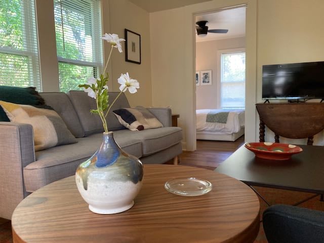 Perfect South Austin retreat just minutes away from the vibrant South Congress, trendy South Lamar, iconic Barton Springs, scenic Lady Bird Lake, and the heart of Downtown along with free parking. Inside, you'll find a spacious bedroom featuring a luxurious California king bed and ample closet storage. Large widows for natural light (curtains are on all windows for privacy) . For additional sleeping space, the cozy living room includes a convenient pullout queen bed from the comfortable couch.