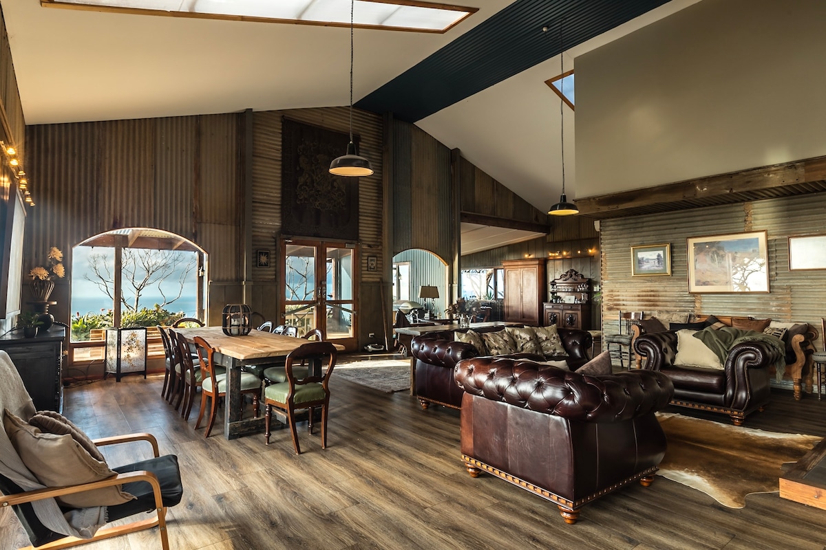 Retreat and step back in time, The Barn is a fully renovated space with many modern fittings , but maintaining old rustic charm, the Barn is perfect for all families, groups and couples alike. on 2 levels with access to sleeping area via a staircase; with double barn doors opening to a beautiful view of the majestic Mount Remarkable. dining and kitchenette ground level, along with full bathroom and toilet,please note dining table is now round not as pics show, offering more space for guests