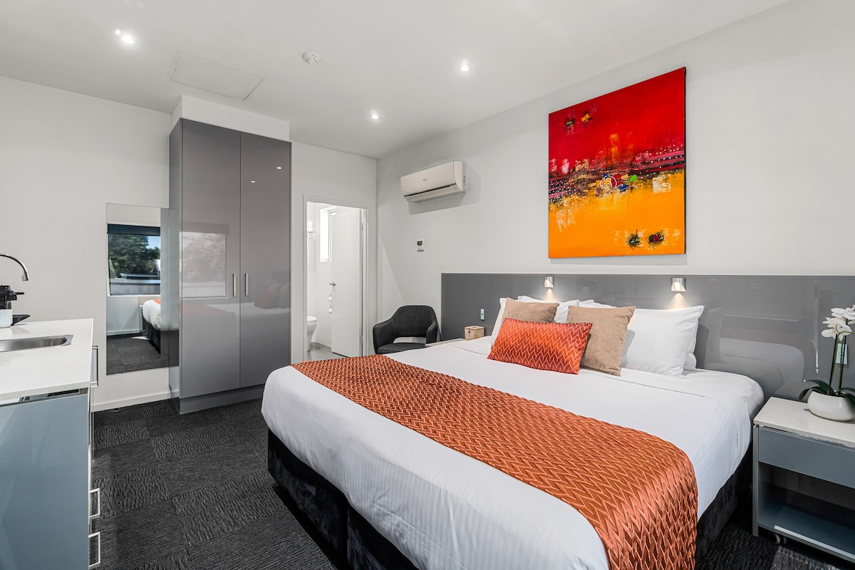 Modern 2-Bedroom Interconnecting Studio in North Adelaide offers comfort, privacy, and convenience in the heart of North Adelaide Each studio features its own ensuite bathroom, free Wi-Fi, TV and a Nespresso coffee machine. Kitchenette facilities are provided in each room, including a microwave and mini fridge. Free on-site parking is available. Located in a quiet, premium area close to shopping, dining, hospitals, Adelaide Oval, and the CBD.