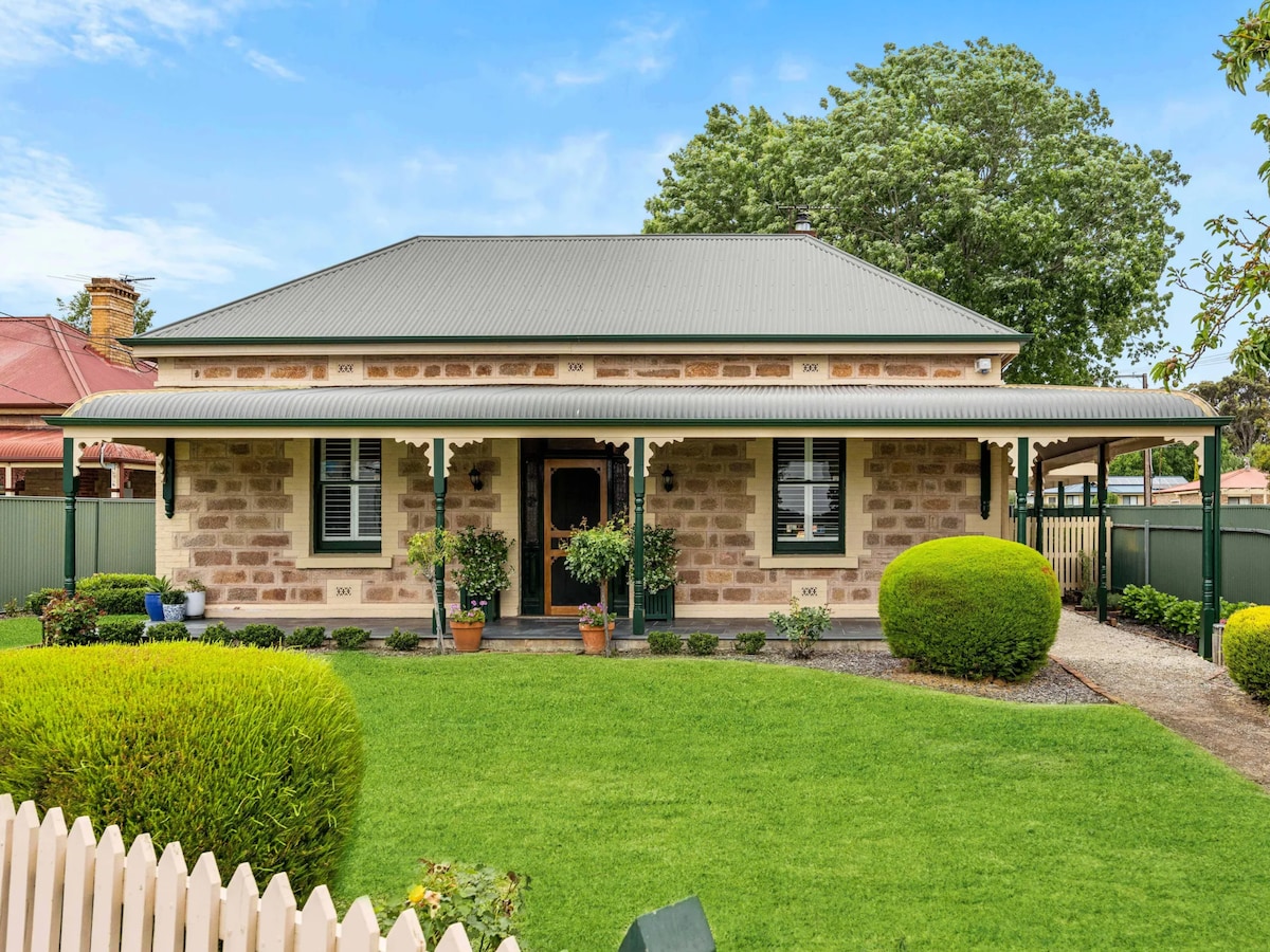 Welcome to our beautifully renovated 1910 cottage in central Mount Barker. Spacious for up to 7 adults—ideal for families, romantic getaways or wedding prep. Features ducted aircon, wood fireplace, big-screen TVs, washer/dryer, and a well-equipped kitchen. Enjoy pretty gardens, shady trees, outdoor seating, and entertaining areas. Walk to shops, restaurants, cinema, and supermarkets. Heritage charm meets modern comfort! We are unable to host pets or service animals due to severe allergies.