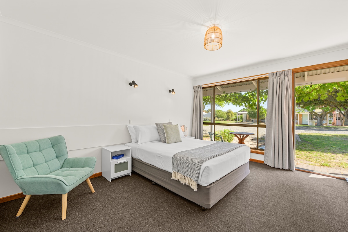 Upgrade to our spacious and luxurious Executive Sea View Rooms, located to the side of the Chapman building on both ground floor and first floor accessible by stairs only. Relax and enjoy the stunning views of Nepean Bay from your private balcony. Features include contemporary furnishings, air-conditioning, flat-screen TV, a private balcony area with an outdoor setting and a modern bathroom with shower.