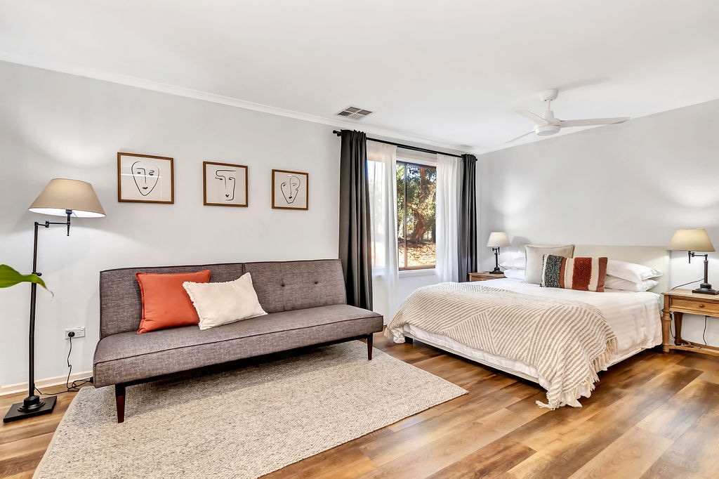 Unwind at our beautiful escape in McLaren Vale. Enjoy nearby wineries and beaches or simply relax surrounded by local wildlife. This piece of paradise is equip with air conditioning, an indoor fire place, spacious deck, fully equip kitchen, and bikes. Indulge in a welcome basket of local produce for breakfast, a cheese board, as well a bottle of wine or bubbles. With the Willunga Basin Trail at your doorstep and 8 wineries in walking distance, this property truly provides the perfect retreat.