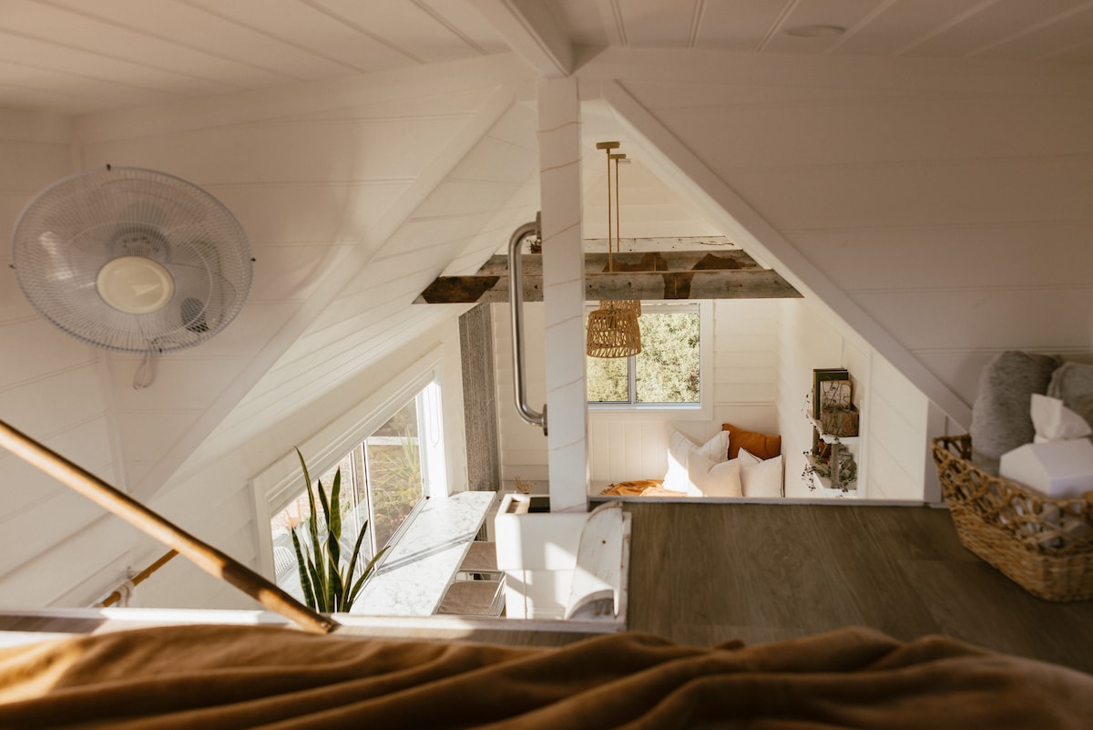 This beautiful shipping container tiny home is wonderful for people who love nature, animals and walking in the bush. This rustic tiny home is architecturally designed and constructed almost entirely of recycled materials gathered from house demolitions. Situated in an amazing location overlooking large lawns and a pond with sea views only 20mins from the cbd. We would love to share our quirky home with you. We also rent space for parties and weddings at a higher cost per night. Just ask