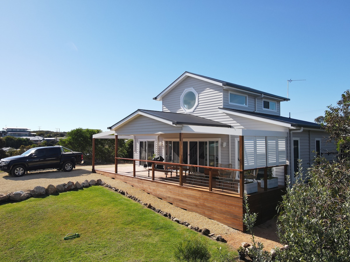 *Central Kangaroo Island location, *Great Sea views and New! *Guest feedback -- A perfect home away from home on Kangaroo Island --*peaceful and spacious / cosy/ comfortable with native animals all around us. *Relax on the deck or lounge and soak in the wide Ocean and Valley views. *located in the "marine precinct' of KI. * Walking trails from the home along ocean, valleys and into national parks.