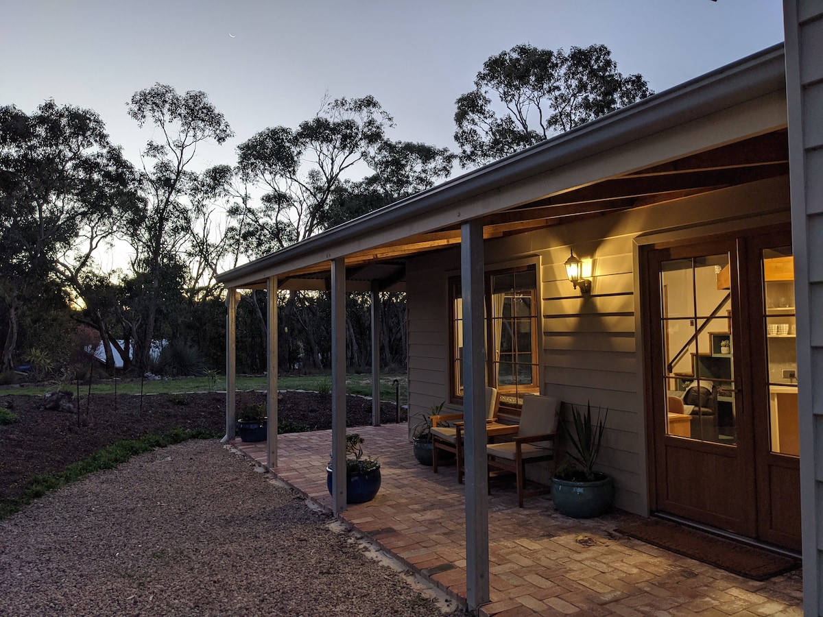 Self contained cottage on farmland overlooking the gum trees and horses. Enjoy the cozy indoor fire (wood provided) and outdoor fire pit. Beautiful for a country getaway 10 minutes to McLaren Vale & Willunga and just down the road from Kuitpo forest. Many incredible restaurants and wineries an easy commute. Indoor wood fire & full kitchen facilities and rainwater. Fast Starlink internet. Outdoor deck with BBQ, fire pit, wood fired pizza oven and views overlooking the farm. Peace and quiet.