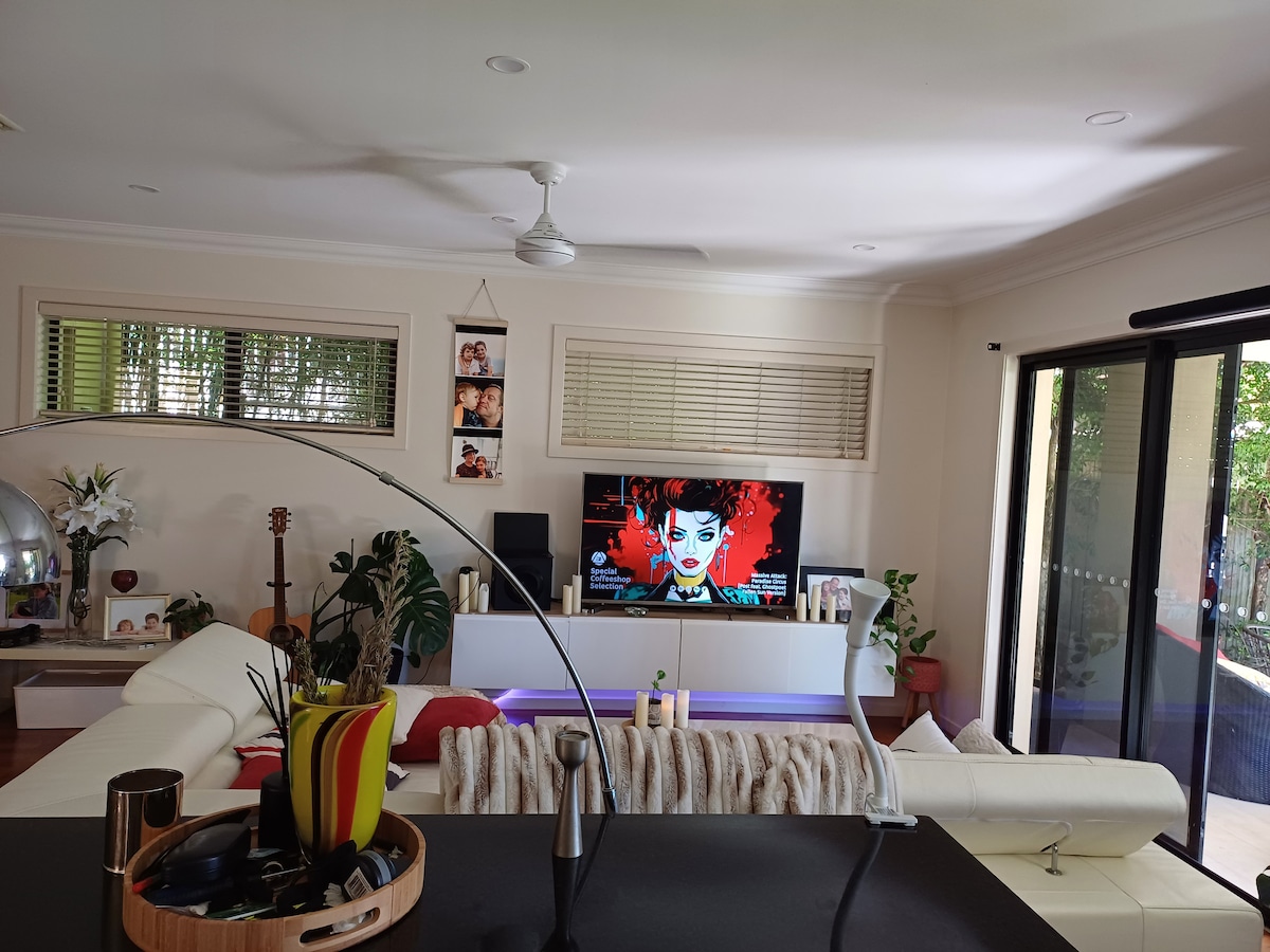 Forget your worries in this spacious and serene space. Watch the birds and flowers from the garden gazebo. Your home away from home is a 2 bedroom fully self contained air cond. home behind the family home. The 2 homes are connected via a shared pool room which also serves as the entry to your new abode. Secure off road parking right at your door. a comfortable sofa/bed allows for an additional bed if required. Wifi and smart tv plus aDVD player and video library in main b/room and lounge.