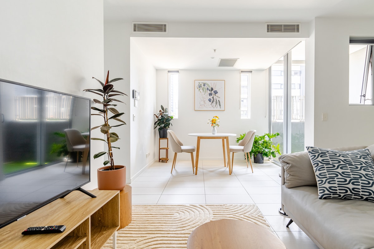 Stay in style at this modern 1-bedroom Brisbane City apartment, just steps from Queen Street Mall, South Bank, and the river. Enjoy easy access to dining, entertainment, and scenic walks. The living room includes a comfortable sofa bed, perfect for extra guests. With public transport close by and attractions like the Botanic Gardens and QPAC within minutes, this central retreat offers the ideal blend of comfort and convenience.