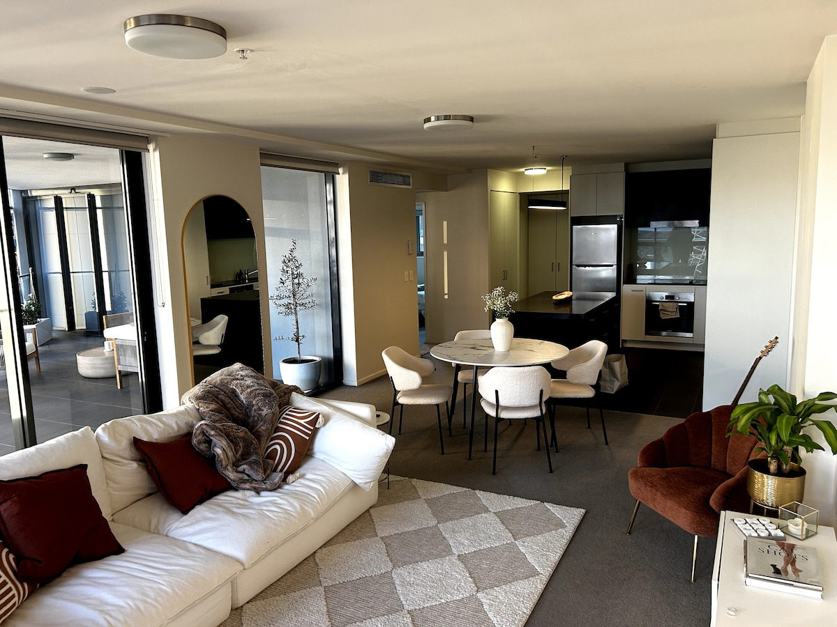 Bedroom opens on to living room with floor to ceiling glass sliding doors, opening out to a large & usable balcony; Comfy lounge, Wi-Fi, Netflix; Combined Air Cooling & Heating; Well appointed kitchen; Modern bathroom with rain head shower & hair dryer; Laundry including washing machine & dryer; Easy self check-in any time via lock box; There is no designated car park, but there are plenty of visitor car spaces which are available most of the time.