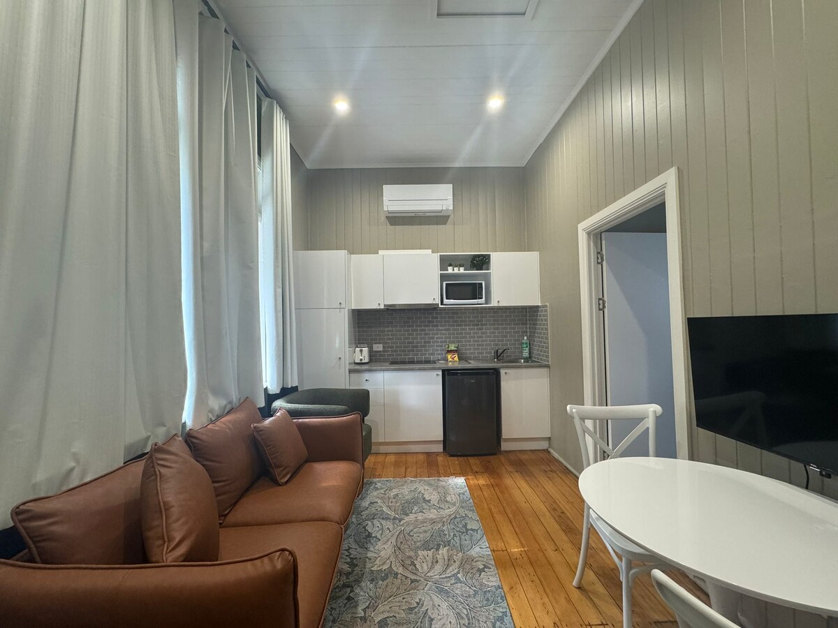 Boutique Motel, quite and clean. A Deluxe king bed with a single bed, a desk and round table with chairs to sit with a flat screen TV, Free WI-FI and ironing board centre, following a robe with a kitchenette incorporated a sizable private ensuite, and Mini-bar in room. Plus guest laundry, Swimming Pool and Spa. Close to Restaurants Bars and shops. 10min from Bris Airport. A short walk to Eagle Farm & Doomben race course, train station is directly across the road for access to Brisbane City.