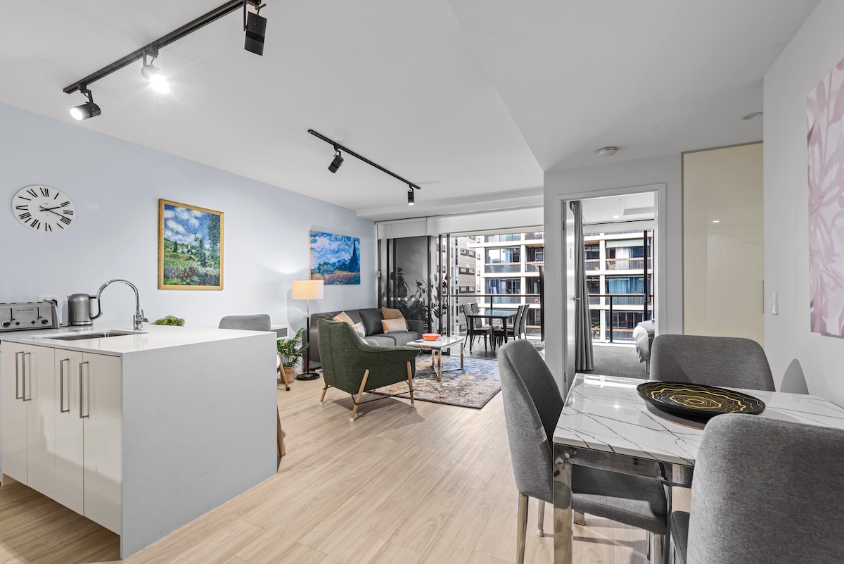 Bedroom opens on to living room with floor to ceiling glass sliding doors, opening out to a large & usable balcony; Comfy lounge, Wi-Fi, Netflix; Combined Air Cooling & Heating; Well appointed kitchen; Modern bathroom with rain head shower & hair dryer; Laundry including washing machine & dryer; Easy self check-in any time via lock box; There is no designated car park, but there are plenty of visitor car spaces which are available most of the time.
