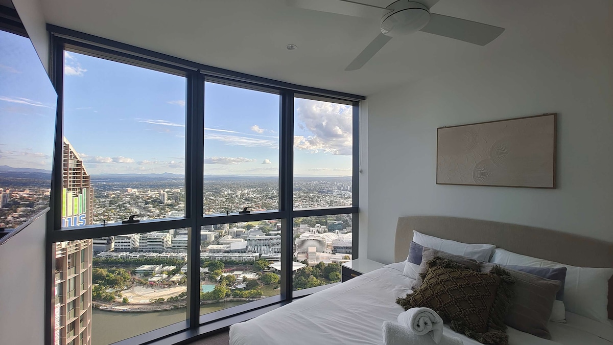 Our apartment is set on level 20 rising high above the city with 180° uninterrupted views of the beautiful Brisbane river from the living room. Thoughtfully decorated and furnished, this apartment will be the perfect base for you to explore and experience all that beautiful South Brisbane has to offer. Leave your car parked and walk to South Bank Parklands , GOMA, QPAC, Star Casino and experience the wonderful restaurants of South Brisbane and West End. A 15 walk to Suncorp stadium!