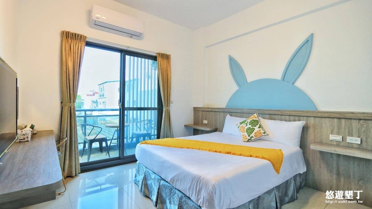 *坪數:7坪 *床型:標準雙人床*2。 *人數限制:4人。無法加人或加床。 *不包含早餐,可入住前加購早餐每份100元。 覓夏旅店位於南灣沙灘正對面,只要過個馬路就到了。旁有7-11便利商店,公車站牌也只需走路約2分鐘。 覓夏旅店10間房間皆為不同設計。各有其風格特色。每間房間都有落地窗和陽台。可以完全欣賞南灣美景。天氣好的時候還可以看到日落。