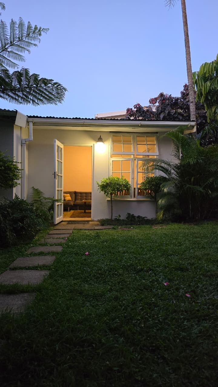 Private..Recently renovated. Parking garage (remote operated). Incredibly central for all activities in Durban (5 minutes to beach, stadium, Florida rd)…Walk to restaurants. Fully equipped kitchen, double bed with aircon, Wifi, tv with Disney+. Inverter for loadshedding. Solar powered geyser=amazing shower. Separate changeroom&workstation. Beautiful private outside area filled with fruit trees/shade. (For + 4 days: Room serviced every 4 days. Personal washing on request)