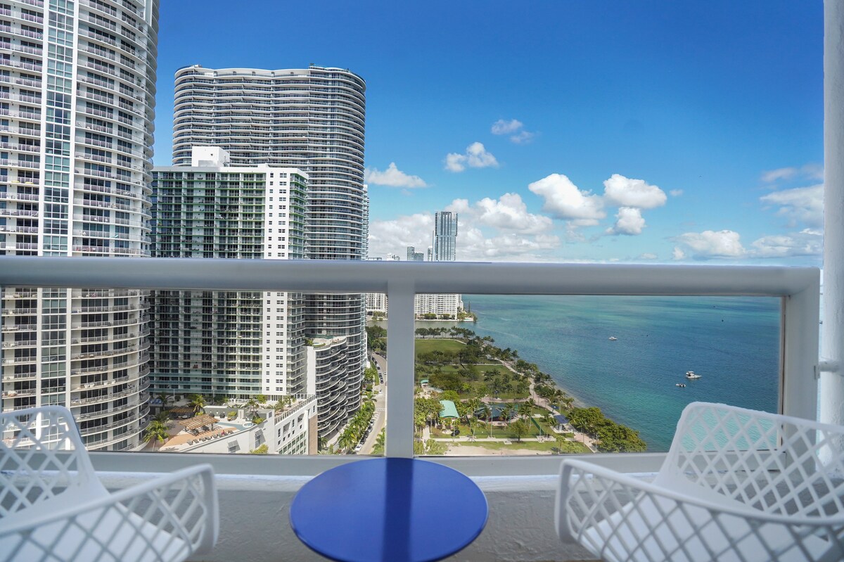 Our unique 5-star HIGH floor corner unit condo is fully furnished with an equipped kitchen located on one of the highest floors at the W Hotel which has the biggest SWIMMING POOL in Miami. We are centrally located along the Miami river with amazing sunset views. Walking distance to City Centre Mall, Whole Foods, restaurants and bars. Just a short drive to the design district & south beach. THIS IS THE PLACE TO STAY! Airport transfer, housekeeping, car rental available based on availability.