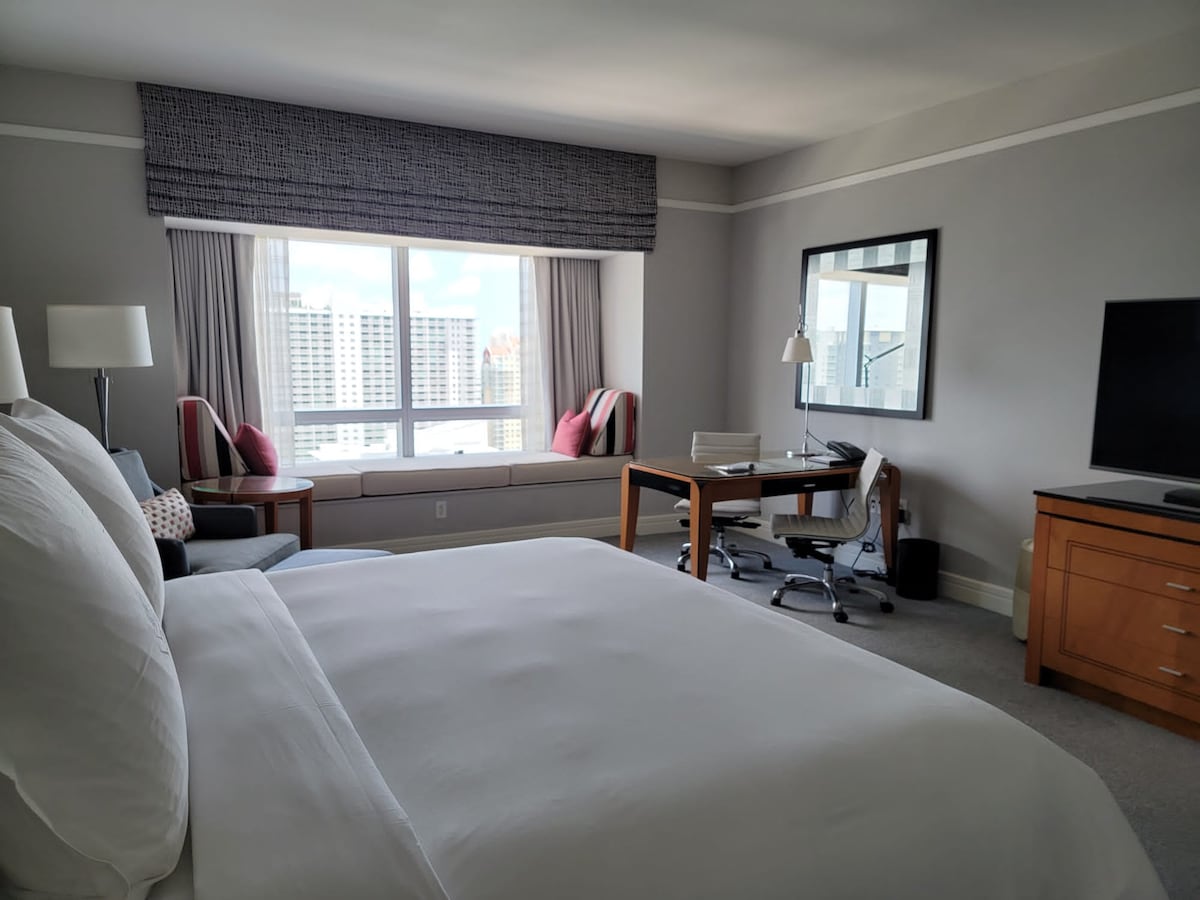 Views of Miami’s glittering skyline provide the backdrop to a peaceful night in this privately owned, spacious Four Seasons Brickell corner suite. The hotel is walking distance to all the action, yet is quiet and maintains a peaceful vibe. The location is unbeatable- just a two minute walk to the water, where you are immediately on the waterfront path which you can walk, bike, or run along. Valet parking, pool, jacuzzi, sauna, spa, and Equinox gym are all included.