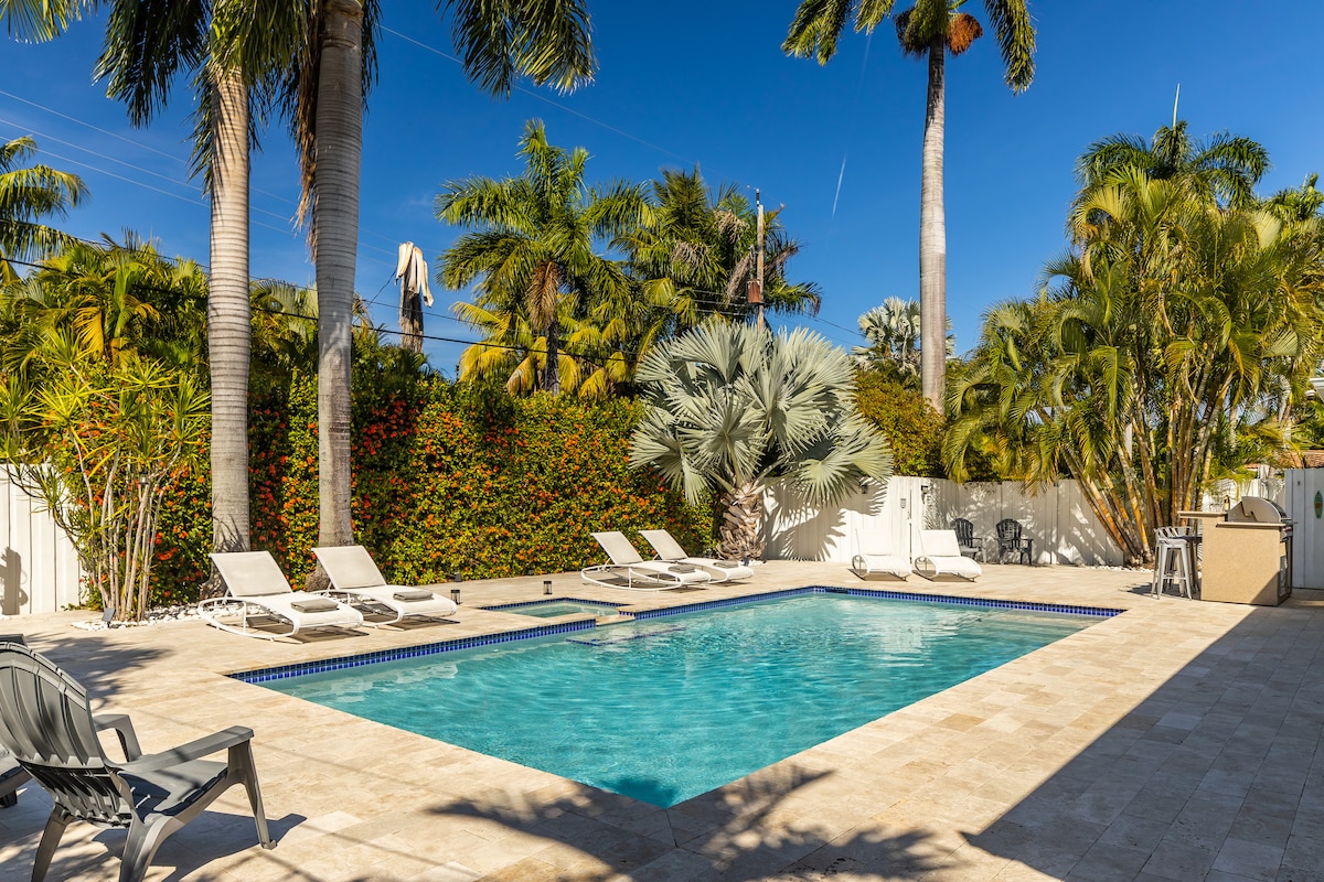 Your modern beach vacation home is in a TRANQUIL upscale residential neighborhood w. a PRIVATE HEATED SCREENED POOL + OUTDOOR PATIO & DINING AREAS + BILLIARDS. The home is fully fenced w. max privacy and a dedicated workspace with high-speed Wi-Fi. Centrally located: ★ 5 mi. to Hollywood Beach & Hard Rock Guitar Resort Casino | 7 mi. to Hard Rock Stadium (Miami Open, F1, Concerts) & FLL airport | 19 mi. to Downtown Miami / Brickell / South Beach | 5 mins to Target, Starbucks, Publix (grocery)★