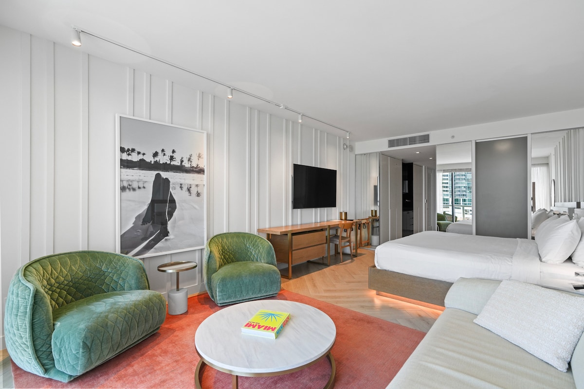 Welcome to your exclusive retreat nestled within the renowned 1 Hotel & Residences Miami Beach (not Roney Palace). As our guest, you'll enjoy access to the same luxurious amenities offered to hotel patrons, except for daily housekeeping and room service. Our private residences boast spacious layouts, exceeding the standard hotel accommodations, and are tastefully furnished with the hotel's elegant furniture package. Our rates are up to 60% lower than the hotel's advertised prices.