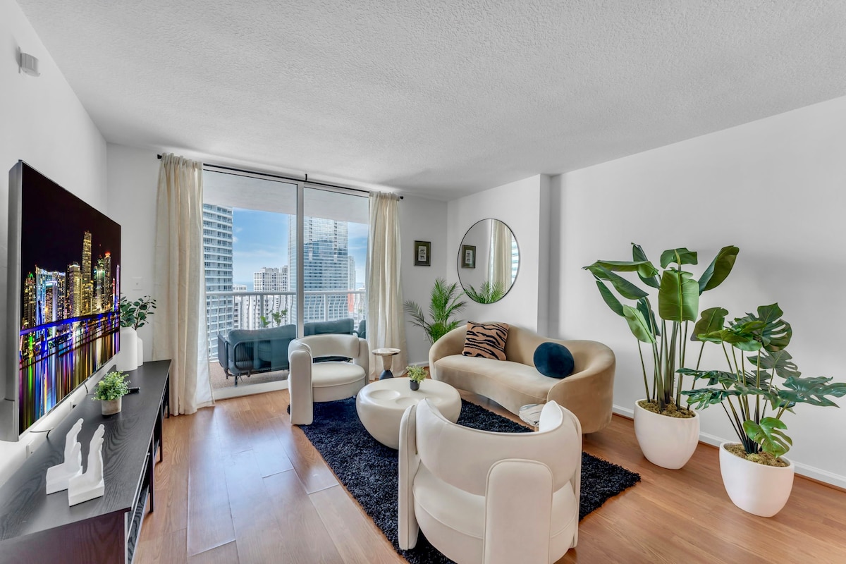 Stunning one bedroom condo located in the best area of Brickell just minutes away from Brickell City Centre and Mary Brickell Village with restaurants, bars, shops and entertainment. About this Space -Approx.818 sqft of natural light filled space with gorgeous bay and city views and a large private balcony with dining table and large patio couch -High-speed Wi-Fi -1 free assigned parking spot -Pool, hot tub, jacuzzi, steam room, game room, state of the art gym, and business center