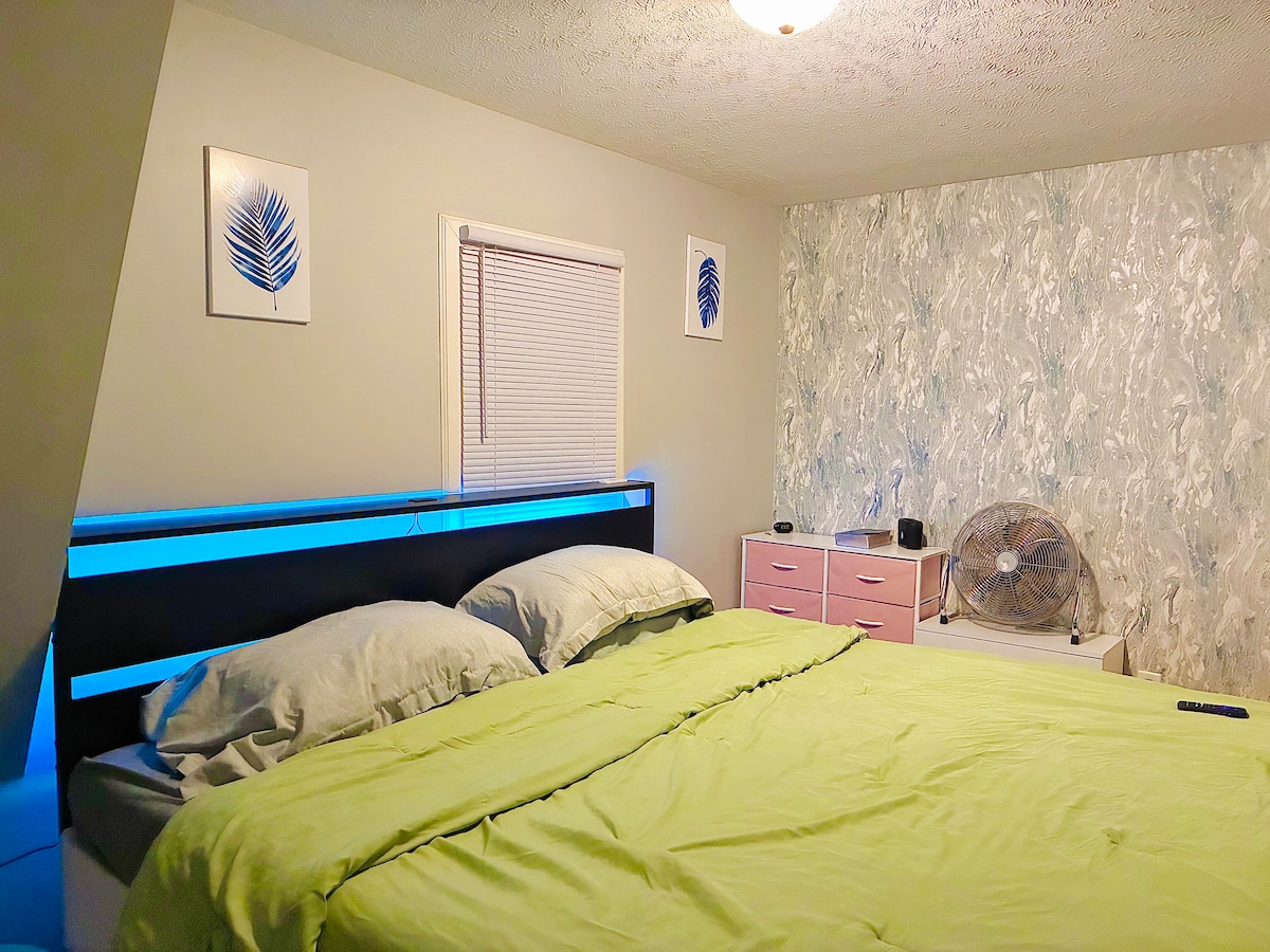 King Bed Bedroom with 55 inch tv Near Notre Dame