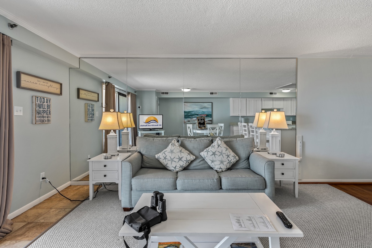 Stunning beachfront condo with direct view of the ocean! Your vacation home away from home! Everything you need right ON the beach. All linens, supplies and a well-stocked kitchen! New 65" TV w/free 4K Netflix provided! Modern serene decor in the heart of OC! Feel like getting out? Enjoy walking distance to Seacrets, Mackey's, and Fager's Island, Subway, Candy Kitchen or Dumsers' Dairyland! More adventure? Walk to minigolf, pontoon boats and jetski rentals! Only 4 minute drive to the boardwalk!!
