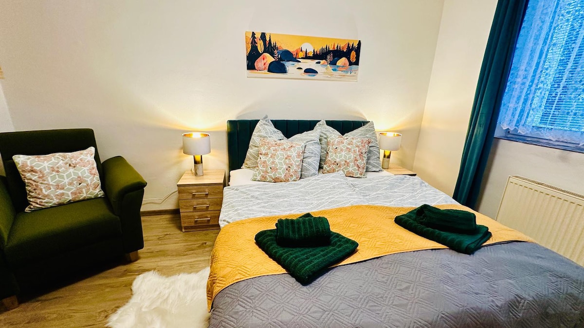 "Vítejte v našem útulném apartmánu v srdci města Vimperk! S úchvatným výhledem na historické památky a moderním vybavením je naše ubytování ideální pro páry či malé skupiny, kteří chtějí prozkoumat krásy tohoto města. Užijte si vlastní kuchyň a prostorný obývací pokoj pro relaxaci po dlouhém dni plném objevování. Díky skvělé lokalitě jste jen pár kroků od místních restaurací, kaváren a pamětihodností. Těšíme se na vaši návštěvu!"