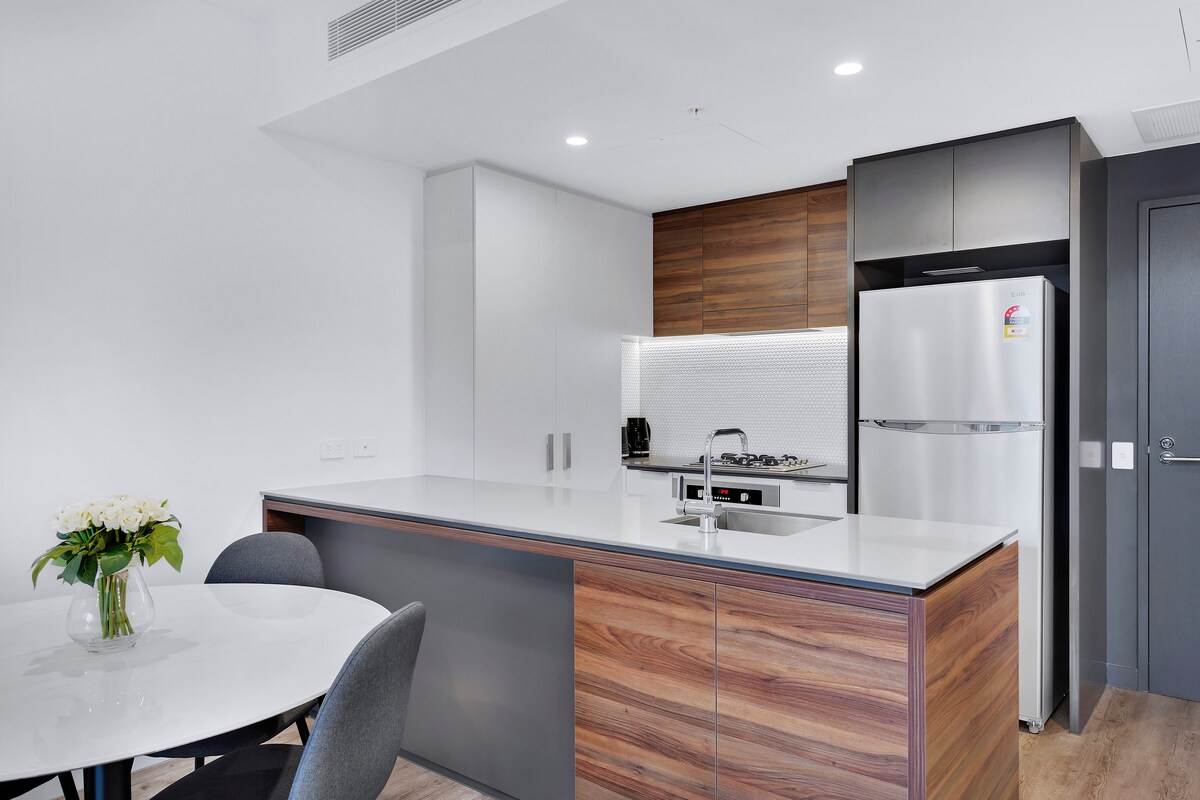 Bedroom opens on to living room with floor to ceiling glass sliding doors, opening out to a large & usable balcony; Comfy lounge, Wi-Fi, Netflix; Combined Air Cooling & Heating; Well appointed kitchen; Modern bathroom with rain head shower & hair dryer; Laundry including washing machine & dryer; Easy self check-in any time via lock box; There is no designated car park, but there are plenty of visitor car spaces which are available most of the time.