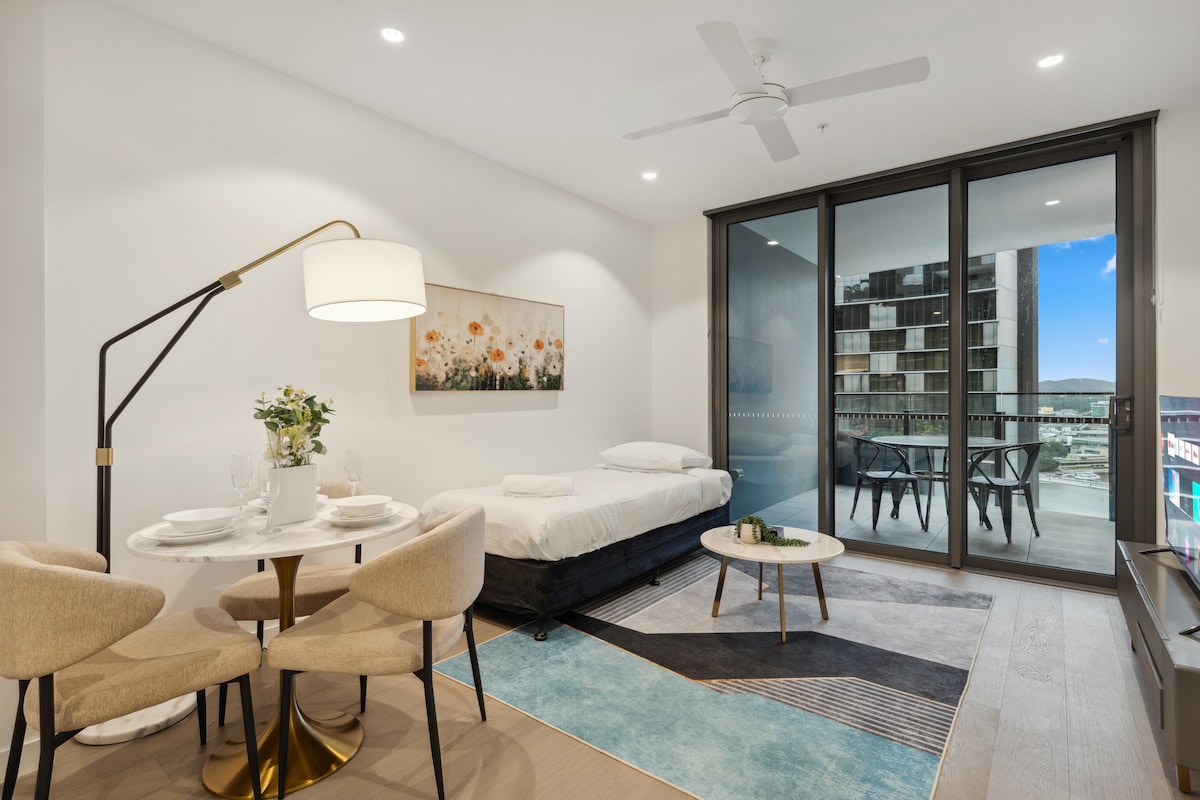 Hotel Style Studio apartment in South Brisbane, close to Gabba and CBD. Just next to Mater Medical Precinct. 5 minutes to the Gabba, River Stage (over Goodwill Bridge) and Exhibition Centre, 2 minutes to Mater Hospitals, Princess Theatre, 5 minutes to Southbank and 10 minutes to CBD (all walking) Pool and undercover parking. Your own key and separate access. Kitchenette (small fridge, microwave, coffee), air-con, pet friendly. Desk and Wi-Fi, ensuite, own balcony, queen bed, key lock safe.
