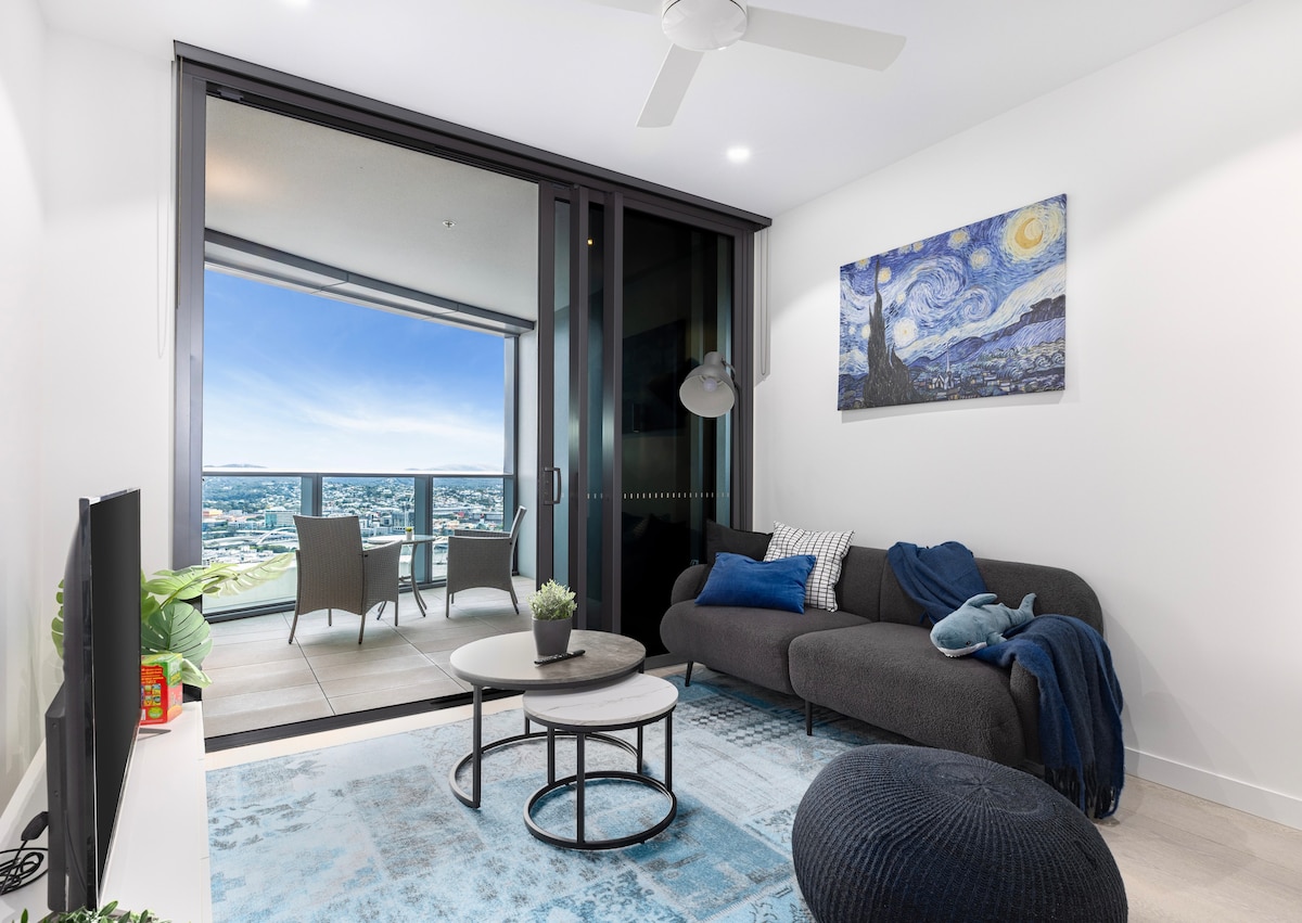 Soar above the city and unwind in serene, sky-high luxury at the New Queen’s Wharf. Perched on the 59th floor, this beautifully brand new curated apartment combines calming nature-inspired interiors with jaw-dropping, uninterrupted views of Brisbane’s skyline, river, and mountains. Step into a tranquil space where soft earthy tones, natural textures, and luxe finishes create the perfect retreat—whether you’re here for business, a romantic escape, or a peaceful getaway in the heart of the city.