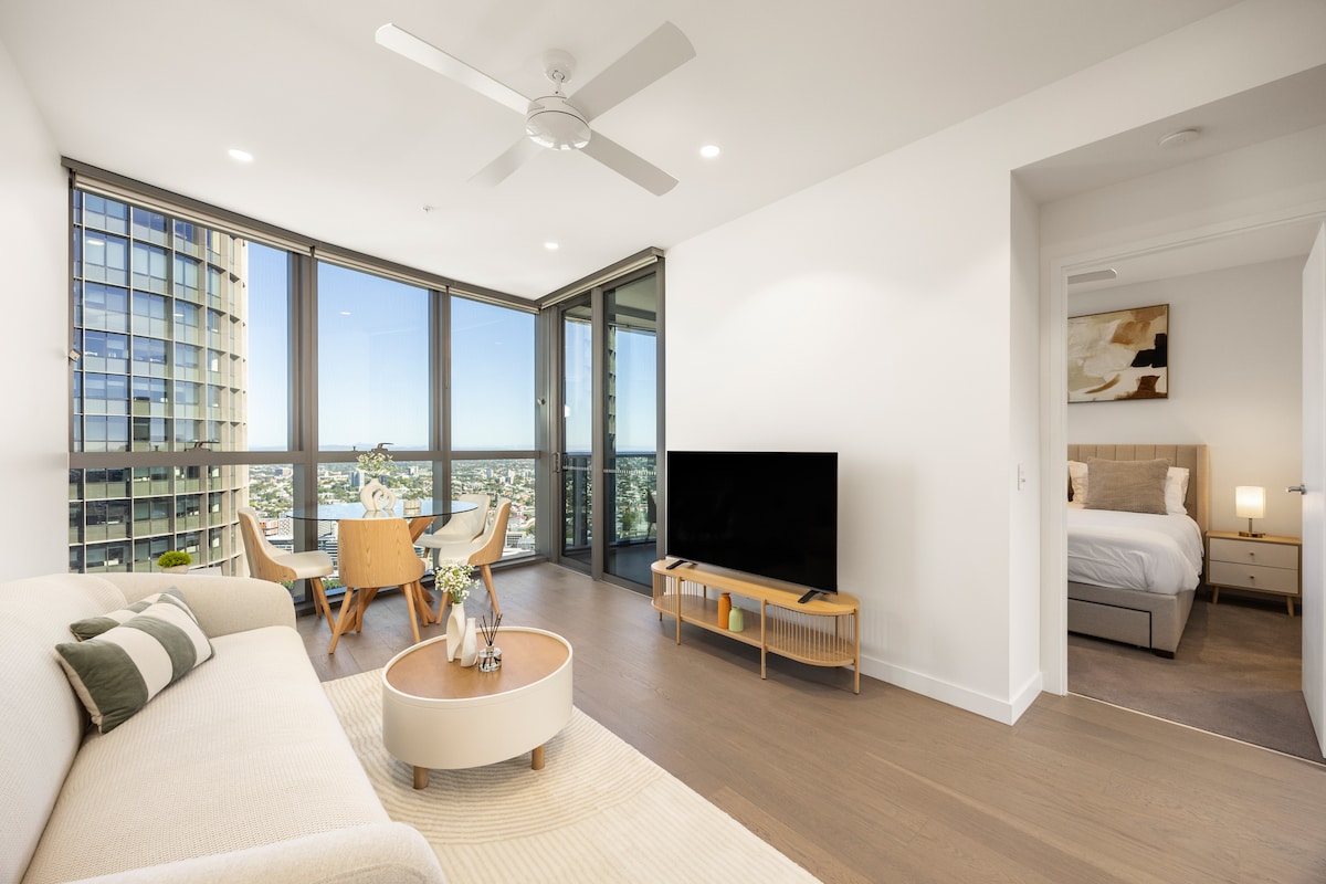 My apartment is set on level 26 rising high above the city with 180° uninterrupted view of our beautiful Brisbane river from the living room. Thoughtfully decorated throughout and carefully maintained clean and tidy, this apartment can be your ideal base for you to explore and enjoy the cultural South Brisbane and the CBD. The building is conveniently located. State library, museum and the QPAC are literally just around the corner. Only a short walk to Brisbane city, South Bank and West End.
