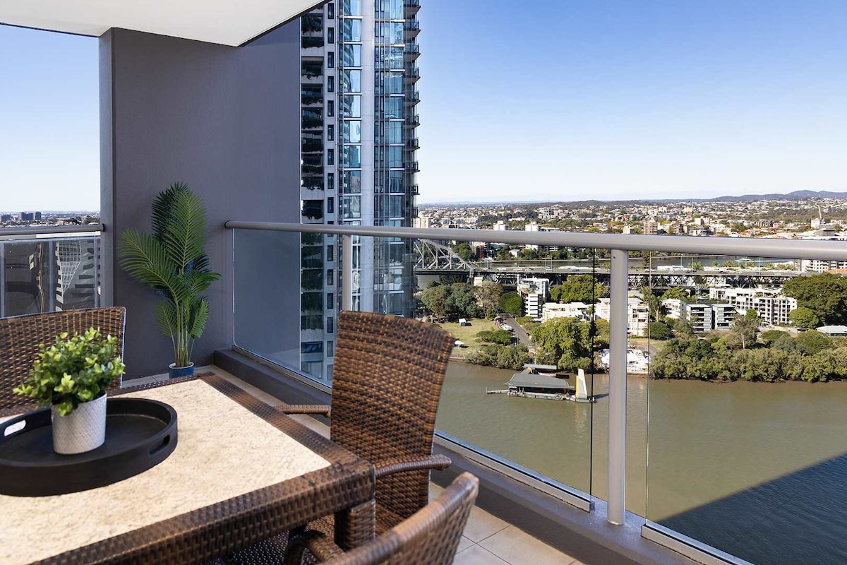 Stay in our modern 1-bedroom apartment with everything you need for a comfortable stay – plus breathtaking floor-to-ceiling views of the river, mountains, and unforgettable sunsets. 🌟 Prime location in the heart of South Brisbane – steps from South Bank, Suncorp Stadium, and the Exhibition Centre. Wander to CBD, South Bank Parklands, QPAC, Museum, Art Gallery, Fish Lane, and the vibrant West End – all just a short stroll away. Relax, explore, and enjoy the best of Brisbane.