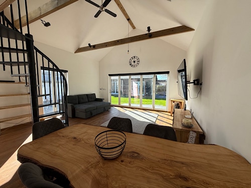 The Hayloft is a beautiful property with a stunning interior. A truly rural escape, but still close to historic Cambridge. Local walks and lovely views. Watch the sun set from the comfort of a large Chesterfield sofa through a large picture window while the open fire crackles! Great English pub AND authentic Italian restaurant in the village both within walking distance. Sumptuous bedding, freestanding bath, open fire and beautiful decor!