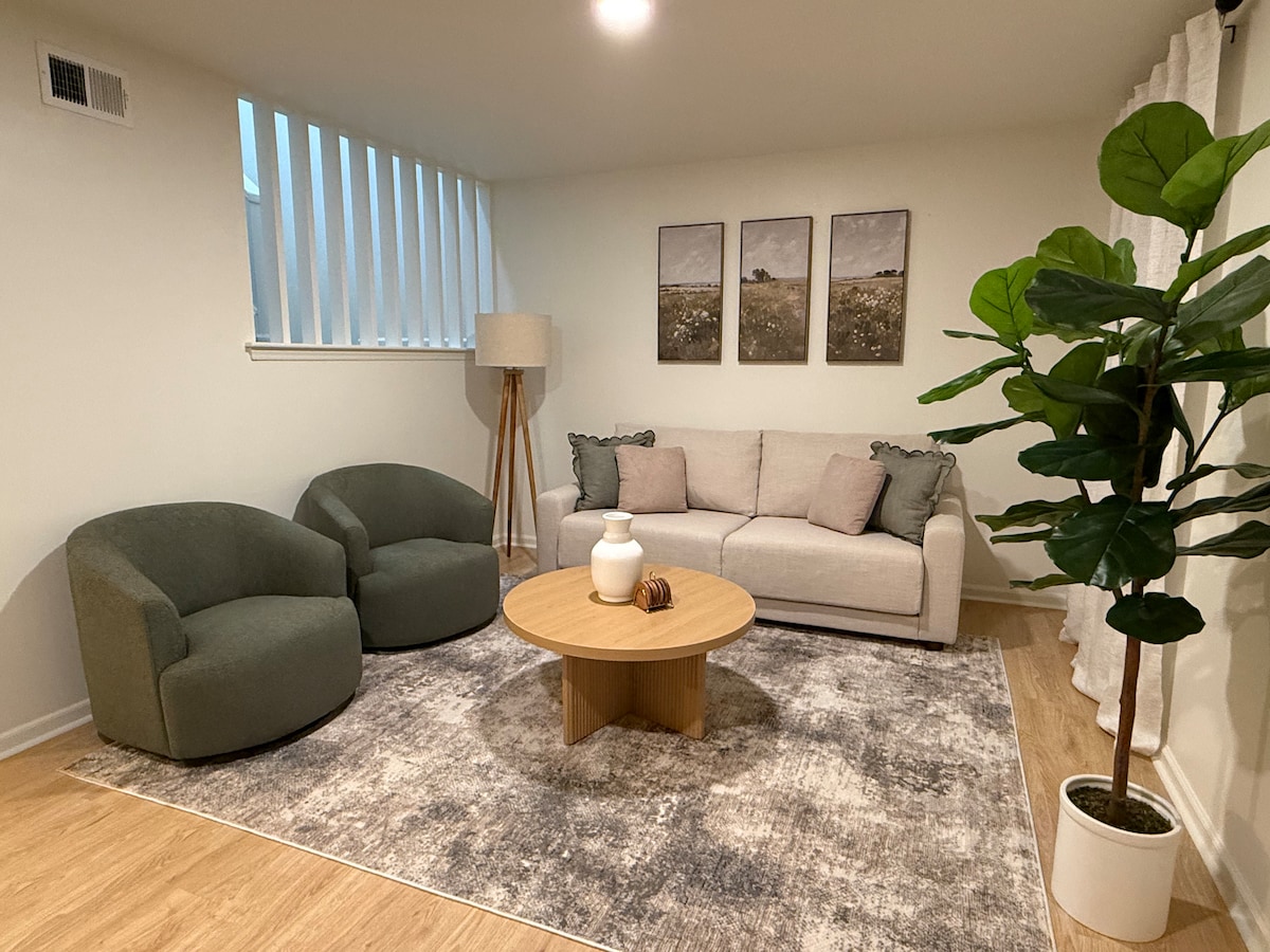 Indigo Terrace is a new one-bedroom basement apartment perfect for a couple, small family or business traveler. This modern space features a beautiful, spacious bathroom (with tub for 2!), full kitchen, one bedroom with queen bed, and sleeper sofa in living room. It’s located in a quiet, tree-lined neighborhood and has a private driveway & entrance with self check-in. Conveniently situated off a main road, it's close to GSP airport, Taylors Mill, and just 8 miles from downtown Greenville.