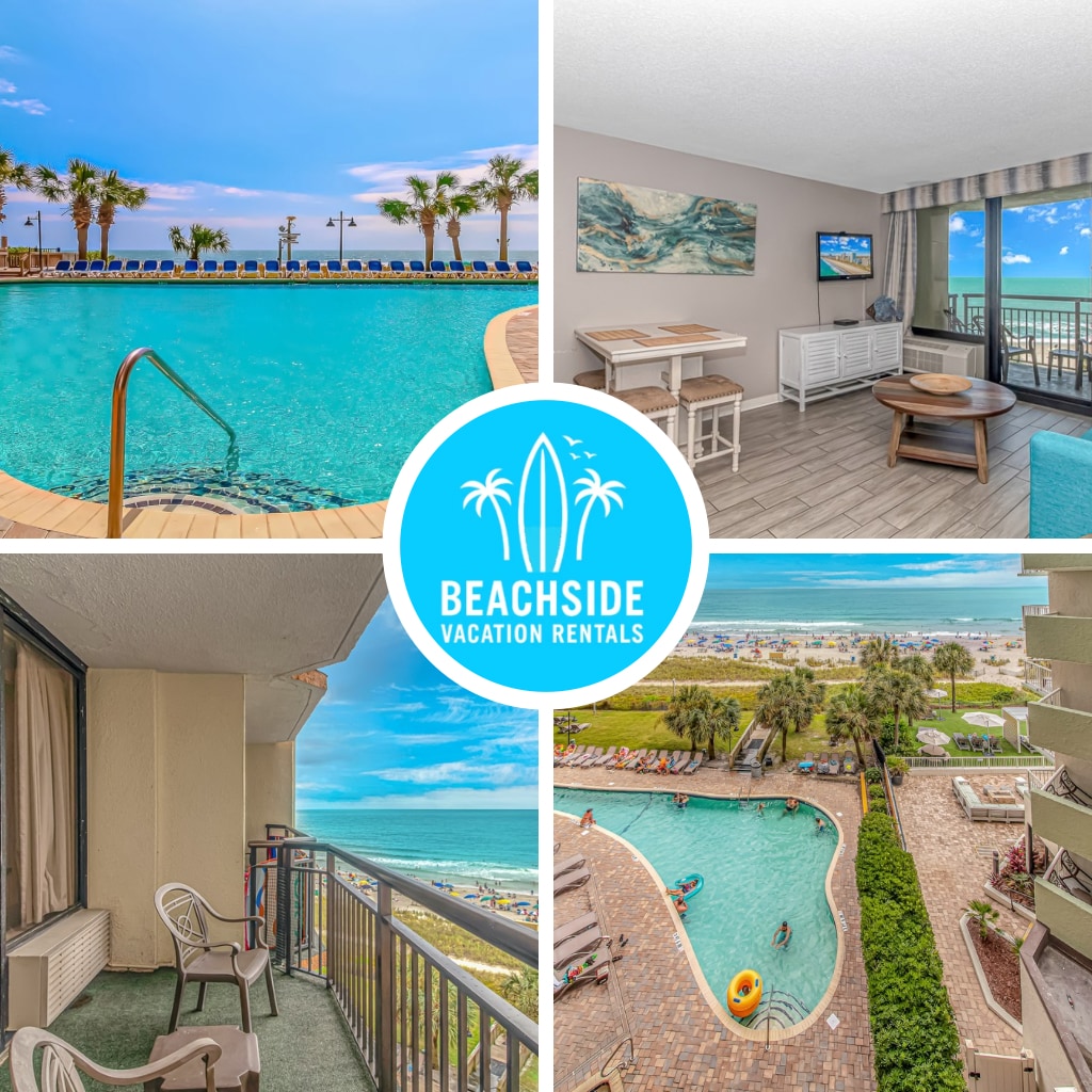We are excited to say: the beaches, pools, and restaurants are now open! This condo is professionally cleaned!! Key Features of this condo include: * Oceanfront One Bedroom at Sandy Beach Resort * 1 King Bed, with Sofa Bed, Sleeps up to 4, sheets provided * Private Bathroom * Fully Equipped Kitchen, with Kitchen Table * High-speed FREE Wi-Fi * FREE Parking * Indoor and Outdoor Pools, Lazy Rivers and Hot Tubs * Short walk to 2nd Avenue Pier and Family Kingdom Amusement Park