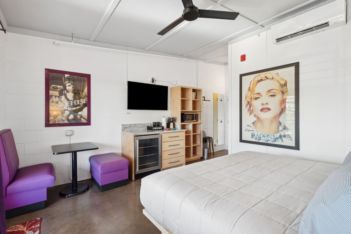 Welcome to Circulo's Corner Suite, creatively designed for comfort. Highlights include three additional window treatments that fill the oversized space with natural light, along with bespoke works from local artists and makers. Located in the heart of North Charleston’s Park Circle district, our boutique hotel blends artisan craftsmanship with modern comforts. *We are in our soft opening - Due to this, rates are discounted as we finish up details * Permit Number: LIC063515