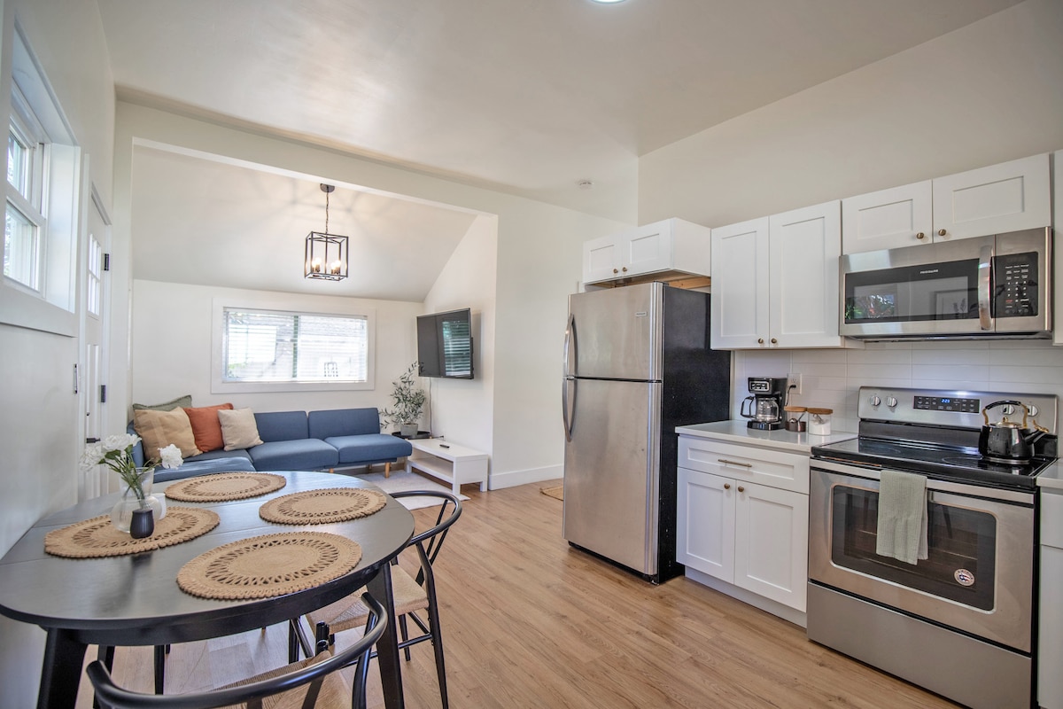 SANITIZED THOROUGHLY BETWEEN GUESTS! Luxury private suite behind an historic home, the Cashmere Cottage is located in beautiful, Live Oak-filled Riverland Terrace - less than 3 miles from downtown & 8 miles from Folly Beach. You'll feel like royalty in this condensed space with luxury linens, fully ADJUSTABLE BED (!!), plush towels & robes, coffee bar with mini-fridge, & huge bathroom with a gorgeous frameless shower & salon-quality products to pamper yourself.