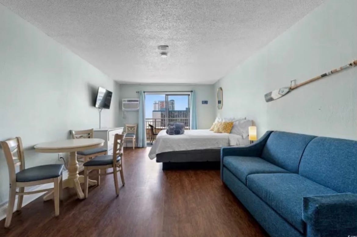 New sofa New washer and dryer New Kitchen New Bathroom New addition with Fireplace & TV wall console. Renovated with all wood floor, new furnitures & mattresses. Amazing view of Atlantic Ocean through direct ocean front balcony, located in the center of Myrtle beach. Steps away from Family Kingdom Amusement Park, Beach Boardwalk, 2nd Ave Pier. Enjoy the stunning view and breeze at the balcony. Indoor & outdoor heated pools, 3 hot tubs, large kids pool, lazy river.