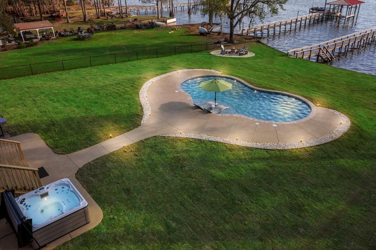 Stunning luxury log home on the big waters of Lake Marion, featuring a private fishing pier, boat dock, brand-new saltwater pool, hot tub, and more. This custom-designed retreat offers 3 spacious bedrooms, a loft, and 2 elegant bathrooms—one with a clawfoot soaking tub and separate water closet. Enjoy dining and entertaining on the expansive screened-in porch with a custom 12’ outdoor bar. Just 6 minutes from I-95, this serene lakeside escape blends rustic charm with upscale comfort.