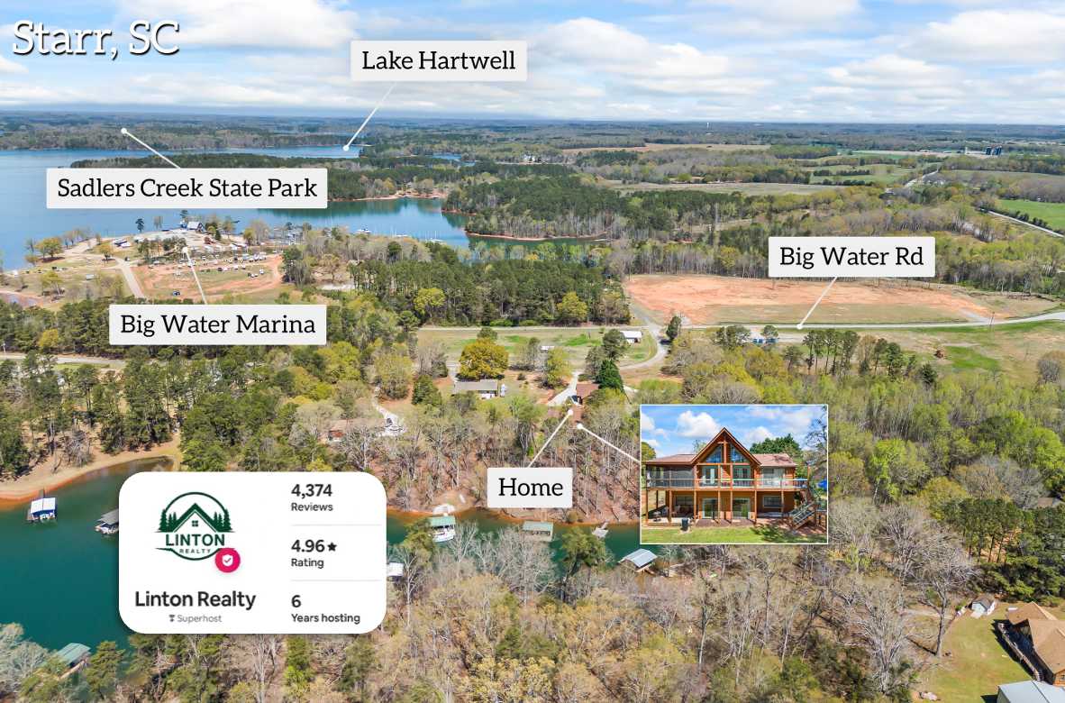 Come and enjoy nature with 100+ acres to roam. Architect James Fox designed this cantilevered cliffside home overlooking a beautiful waterfall. Feel like you are in the trees, in an area much as it was when inhabited by Cherokee Indians. Stream feeds into Lake Hartwell. In the summer months on the weekends and holidays kayaks, jet skis and small boats visit the falls. This property is in the foothills of the Appalachian Mountains. Please respect our pet policy, only service animals.