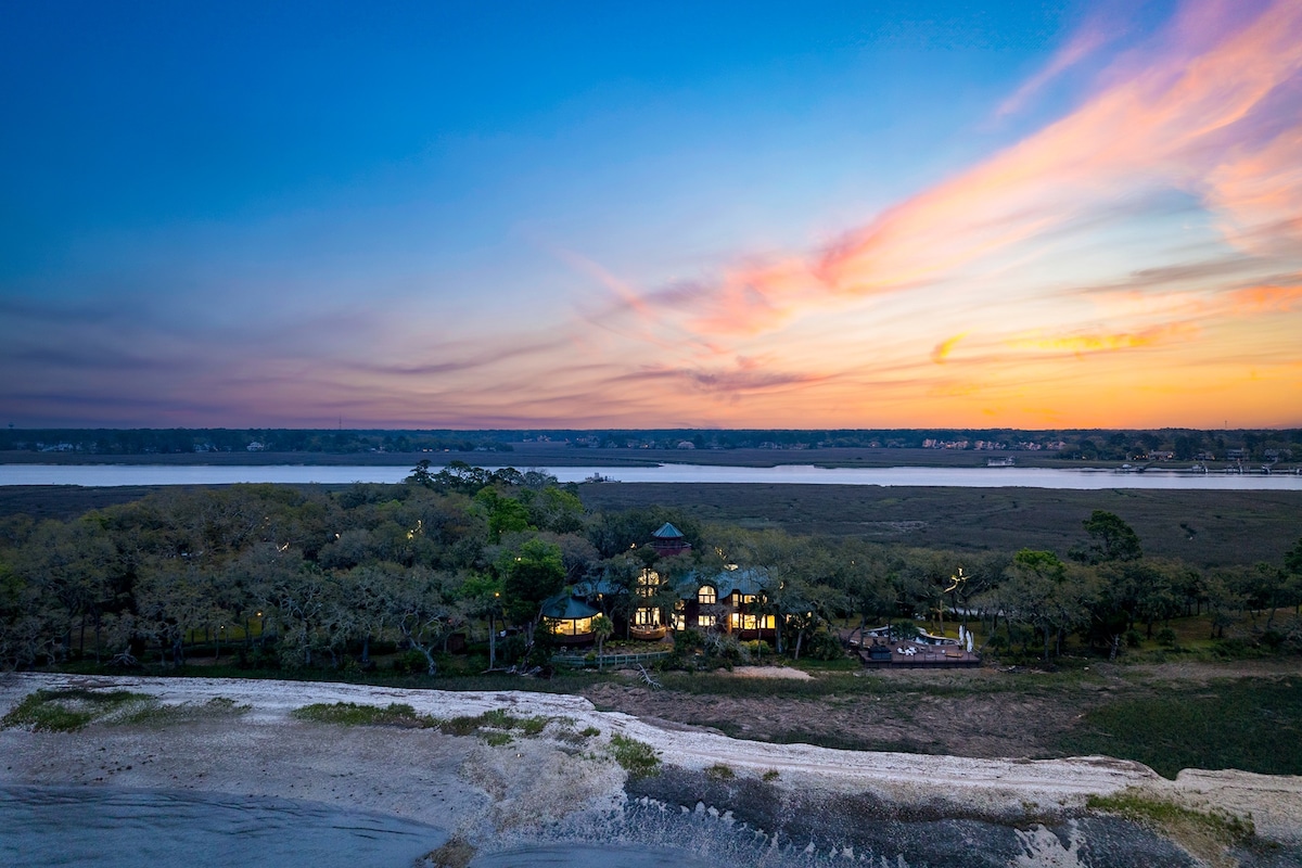 Sleeps 26 on your own private island! Buck Island is an exclusive 10-acre retreat off Hilton Head featuring two homes. The main house offers 5 master suites sleeping 10, plus a guest house sleeping 16. Perfect for large groups seeking total privacy, comfort, and adventure. Enjoy a true private island experience with unmatched, easy access—seclusion without sacrificing convenience.