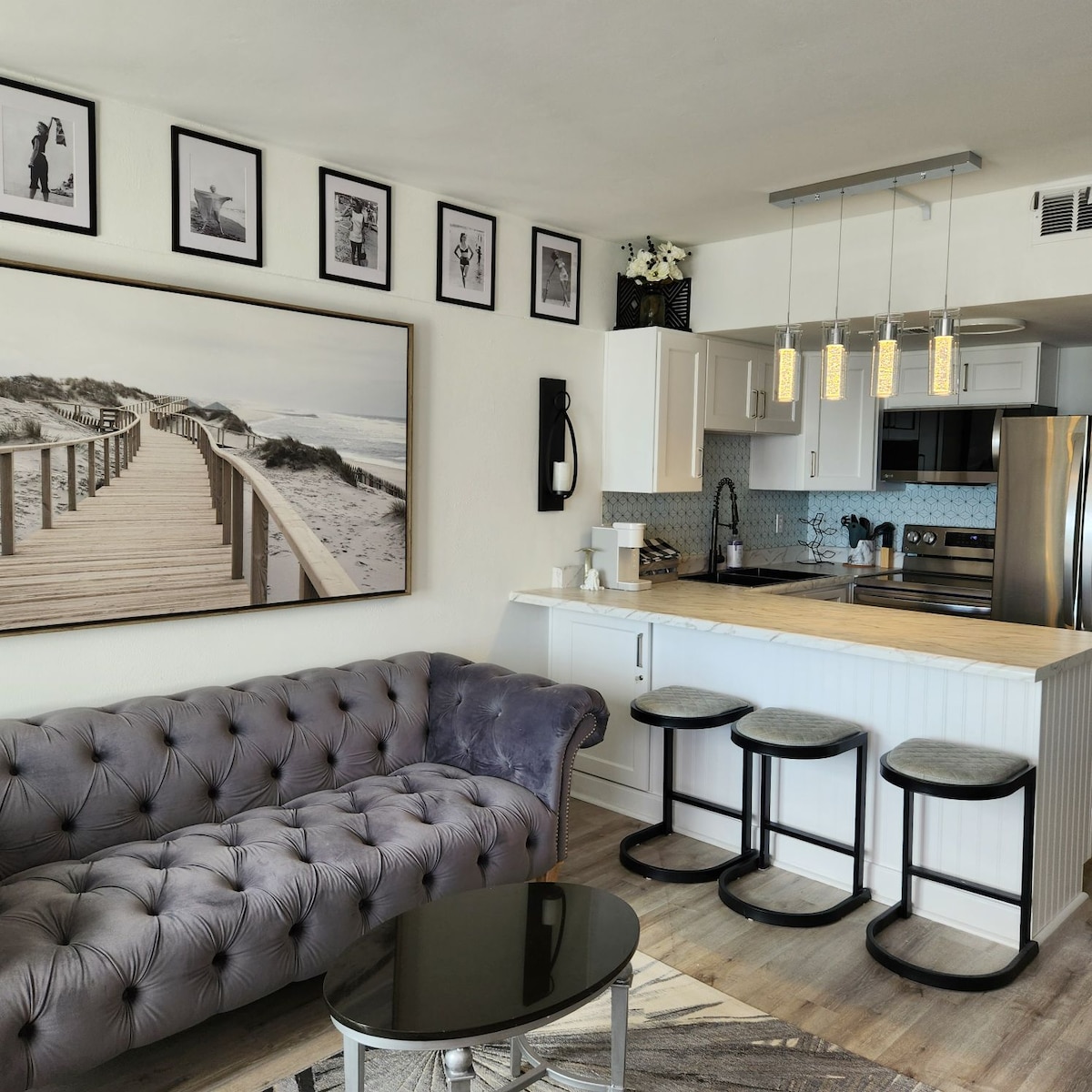 Warm, modern, and designed with character—this newly remodeled 2-bed/2-bath is the closest condo to Hilton Head's hidden gem beach, with lagoon and sound views. King bed in the primary, twin beds in the kids' room: screened-in sunroom, 3 pools, hot tub, tennis. Fully stocked kitchen with a guest-favorite coffee bar, restocked fresh each stay. In-unit laundry, big-screen TVs in every room, all the beach gear you need (cart, chairs, boards, toys, and more), 400 MB Internet—no cleaning fee!