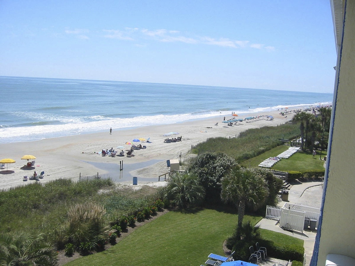 A breezy Atlantic coast escape. Sun games, white sand, and boardwalk are hard not to love. Our unit has a great location!! A quick two-minute walk will have you dipping your toes in the ocean or cooling off in our private oceanfront clubhouse pool. Back at the resort, you can float down our relaxing lazy rivers, slide down giant waterslides, relax in the lush Lagoon Pool or sip a poolside drink. Then watch a beautiful South Carolina Beach Sunset.