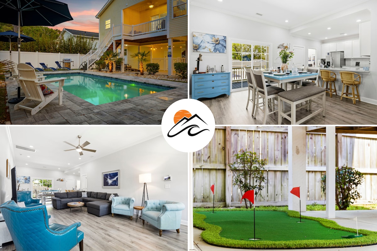 Pet-friendly Crescent Beach retreat just a 3-minute walk to the sand - this 4BR home sleeps 10 and features a large private pool, fully fenced yard with room to roam, outdoor ping pong, putting green, and relaxed indoor-outdoor living perfect for families traveling with dogs.